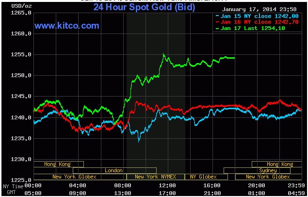 Giá vàng giao tháng 2 đã tăng hôm thứ Sáu tuần qua, lên mức 1.251,9 USD/ounce trên sàn Comex, tăng 0,4% so với cuối tuần trước. Các thị trường Mỹ sẽ nghỉ giao dịch ngày 20/1 để kỷ niệm ngày sinh của mục sư Martin Luther King Jr.