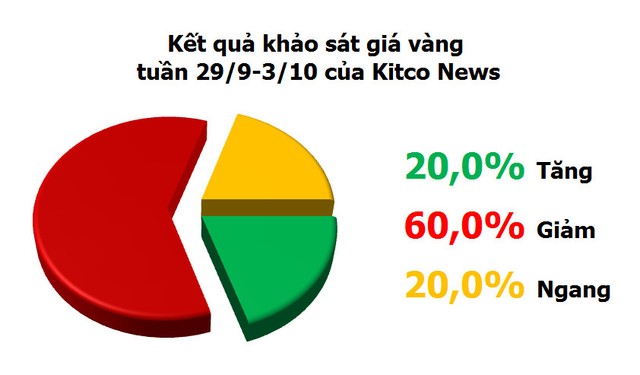 Các thành viên thị trường được Kitco News khảo sát vẫn có cái nhìn bi quan về giá vàng tuần tới. Cụ thể, trong số 20 người trả lời khảo sát, chỉ có 4 người đoán giá tăng, trong khi có 12 người đoán giá giảm và 4 người đoán giá không đổi.