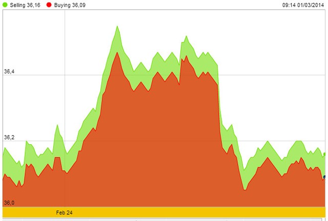 Trên thị trường quốc tế, cặp EUR/USD sau khi giảm giữa tuần đã bật tăng trong ngày cuối tuần trước thông tin IMF đang xúc tiến cho vay cứu trợ Ukraine, giúp đồng EUR hồi phục, trong khi chứng khoán Mỹ tăng điểm khiến nhu cầu nắm giữ USD làm tài sản an toàn ít đi, ép USD giảm giá. Chốt tuần, cặp tỷ giá này ở mức 1.3798, tăng so với mức thấp 1,3640 trong tuần và mức 1,3740 cuối tuần trước đó.