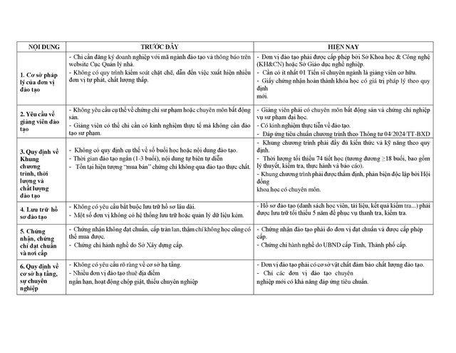 Theo VARS, những thay đổi trong quy định đào tạo môi giới bất động sản nhằm nâng cao chất lượng đào tạo, tăng cường tính chuyên nghiệp và đảm bảo tính minh bạch, bền vững của thị trường. Do đó, để tránh rủi ro pháp lý và hành nghề đúng quy định, các môi giới và doanh nghiệp cần lưu ý: