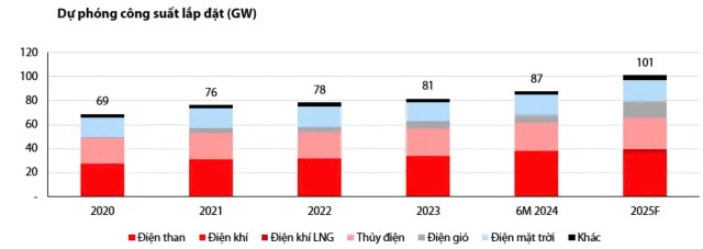 Trong năm 2025, sự đóng góp của thủy điện sẽ cao hơn nhờ chu kỳ thời tiết thuận lợi cùng với nhiệt điện khí LNG. Trong khi đó, điện than không còn dư địa để phát triển (tối đa 30,1 MW tới năm 2030, thực tế 6 tháng 2024 đã đạt 29,5 MW), nguồn năng lượng tái tạo mới hiện vẫn chờ hoàn thiện các cơ chế cần thiết để triển khai, còn điện khí thiên nhiên gặp vấn đề về nguồn cung nhiên liệu.