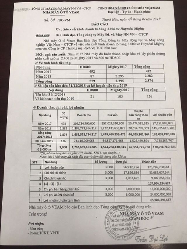 Văn bản chứng minh hợp đồng mua 3000 bộ linh kiện phụ tùng xe Hyundai của VEAM không gây thất thoát