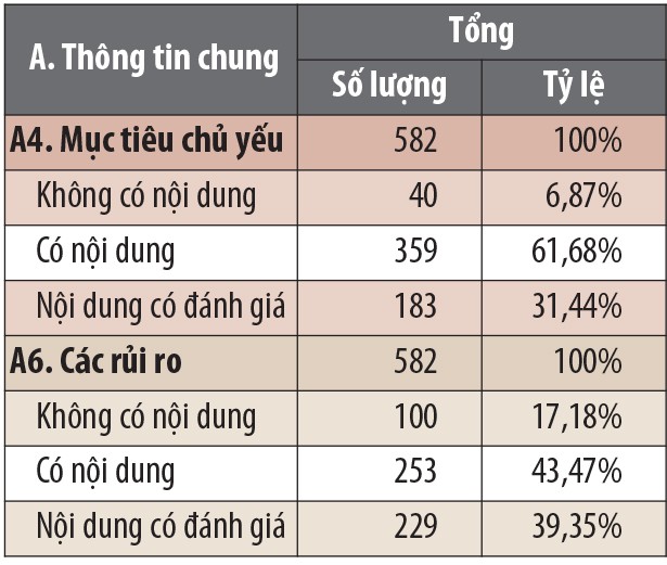 Theo thống kê, có đến 17% số BCTN được chấm không có nội dung trọng yếu về rủi ro và 43% số BCTN chỉ đề cập chung về rủi ro có thể ảnh hưởng đến DN hoặc chỉ đề cập đến rủi ro tài chính trong các BCTC, chứ không nêu thành một mục riêng trong BCTN.