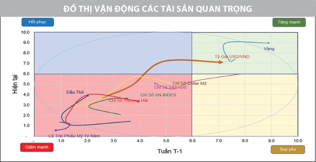 Xét về vận động các loại tài sản, khả năng Fed nới lỏng chính sách tiền tệ đang đến gần khiến lợi suất trái phiếu chính phủ Mỹ giảm. Lợi suất trái phiếu kỳ hạn 10 năm giảm xuống quanh mức 3,9%. Chỉ số đồng USD (DXY) giảm còn 102,9.