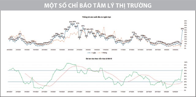 Bên cạnh đó, các chỉ báo định lượng ghi nhận hồi phục mạnh, cho thấy dòng tiền vào thị trường được cải thiện rõ nét. Đường đà lan tỏa ngắn hạn nối dài đà tăng, trở lại trên đường MA10. Sóng tăng mới có dấu hiệu xuất hiện, củng cố cho xác suất đầu tư cao hơn ở vùng giao dịch hiện tại.