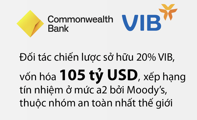 Đến ngày 30/9/2022, tổng vốn chủ sở hữu của VIB đạt 30.500 tỷ đồng, tăng 26% so với cuối năm 2021, cao hơn gấp đôi so với tốc độ tăng trưởng dư nợ. Đối tác chiến lược CBA (Commonwealth Bank of Australia) là cổ đông lớn nhất của VIB với 20% vốn góp. CBA được đánh giá là một trong những ngân hàng có vốn hóa lớn nhất (105 tỷ USD) và an toàn nhất thế giới với xếp hạng tín nhiệm cơ sở (BCA) ở mức a2 bởi Moody’s .