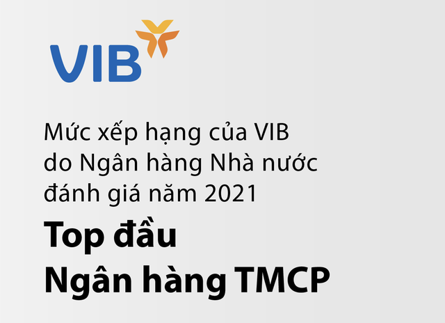 Trong đợt công bố vừa qua, VIB là một trong số ít các ngân hàng thương mại được xếp hạng cao nhất bởi NHNN cho năm 2021, dựa vào kết quả đánh giá với điểm số cao về: An toàn vốn, chất lượng tài sản, quản trị điều hành, kết quả hoạt động kinh doanh và khả năng thanh khoản.