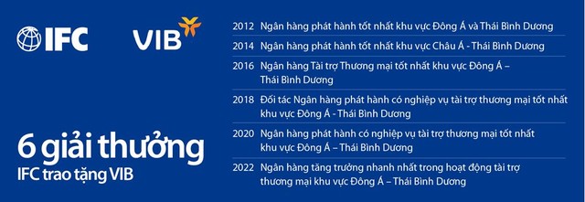 Thiết lập quan hệ với IFC thông qua Chương trình Tài trợ Thương mại Toàn cầu (GTFP) từ năm 2011, VIB là một trong 8 ngân hàng Việt Nam hiện đang tham gia chương trình này với tư cách là ngân hàng phát hành. Trong hơn 10 năm hợp tác và phát triển, VIB hiện là ngân hàng có hạn mức GTFP lớn nhất trong số các ngân hàng tại Việt Nam, đồng thời VIB cũng là một trong những ngân hàng hoạt động tích cực nhất với 6 giải thưởng đạt được từ IFC. Gần nhất vào tháng 02.2022, VIB nhận giải thưởng Ngân hàng Tăng trưởng Nhanh nhất trong hoạt động tài trợ thương mại khu vực Đông Á và Thái Bình Dương của chương trình. Vừa qua vào tháng 5.2023, IFC cũng chính thức nâng hạn mức tài trợ thương mại, đưa VIB trở thành ngân hàng có hạn mức lớn nhất tại Việt Nam là 200 triệu USD.