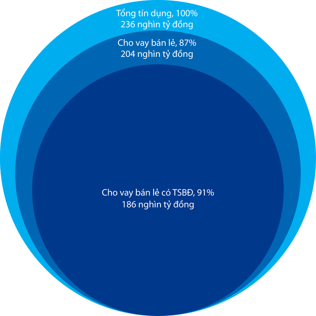 Hiện nay, VIB là một trong những ngân hàng có rủi ro tín dụng tập trung thấp nhất thị trường với tỷ trọng dư nợ bán lẻ chiếm tới gần 87% tổng danh mục cho vay, cao nhất ngành. Trong đó, hơn 90% khoản vay có tài sản đảm bảo (TSBĐ) chủ yếu là nhà ở, đất ở với đầy đủ pháp lý và có tính thanh khoản tốt. Bên cạnh đó, VIB có số dư đầu tư trái phiếu doanh nghiệp ở nhóm thấp nhất ngành, giảm 45% so với đầu năm còn khoảng 1.000 tỷ đồng tương đương chỉ 0,4% tổng dư nợ tín dụng, trong đó phần lớn là trái phiếu thuộc lĩnh vực sản xuất, thương mại và tiêu dùng.