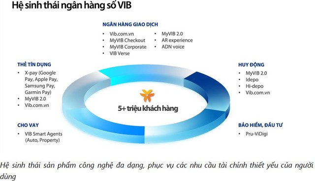 Với hệ sinh thái sản phẩm đa dạng, tích hợp công nghệ tiên tiến nhất như trí tuệ nhân tạo (AI) và thực tế ảo (AR), sự tiện lợi và tốc độ nhanh vượt trội, VIB đã và đang khẳng định vị thế là một trong những ngân hàng đi đầu trong việc mang đến các sản phẩm số sáng tạo, lấy khách hàng làm trọng tâm. Chiến lược số hóa còn giúp VIB được công nhận bởi các tổ chức trong và ngoài nước cho sản phẩm với hàm lượng công nghệ cao, dẫn đầu xu thế.