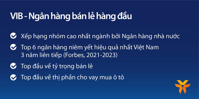 VIB: Lựa chọn hàng đầu cho các sản phẩm tín dụng bán lẻ như vay mua nhà phố, vay mua căn hộ, vay mua ô tô, vay kinh doanh và vay tiêu dùng.