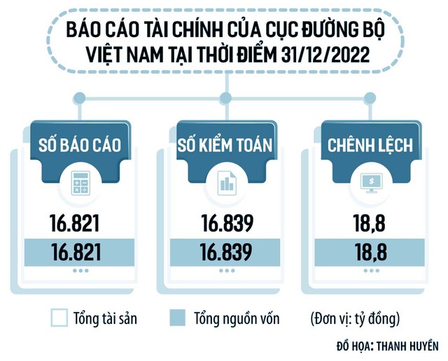 Trước đó, thực hiện Quyết định số 1059/QĐ-KTNN ngày 16/8/2023 của Tổng kiểm toán Nhà nước về việc kiểm toán việc quản lý, sử dụng tài chính công, tài sản công và Báo cáo Quyết toán ngân sách năm 2022; chuyên đề việc quản lý, sử dụng kinh phí đầu tư cho lĩnh vực khoa học - công nghệ giai đoạn 2020 - 2022 tại Bộ Giao thông - Vận tải (Bộ GTVT), Tổ kiểm toán thuộc Đoàn kiểm toán tại Bộ GTVT của Kiểm toán Nhà nước đã tiến hành kiểm toán tại Cục Đường bộ Việt Nam trong thời gian từ ngày 21/8/2023 đến ngày 3/10/2023.