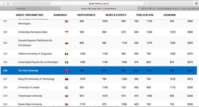 Theo đó, trong 719 trường đại học trên toàn thế giới được xếp hạng thì trường Đại học Tôn Đức Thắng hạng có tổng điểm 5.675, và Trường Đại học Trà Vinh là 5.275 điểm, tính theo các tiêu chí về xây dựng và phát triển đại học bền vững cũng như thân thiện môi trường và thiên nhiên.