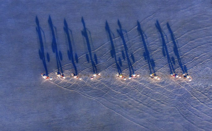 Dawood chụp những chú chim đậu trên rừng lá thu vàng soi bóng trên mặt hồ tạ vùng Huanglongtan thuộc tỉnh Hồ Bắc, Trung Quốc. Đây là một trong 8 bức ảnh được nhiều bạn đọc bình chọn nhất.
