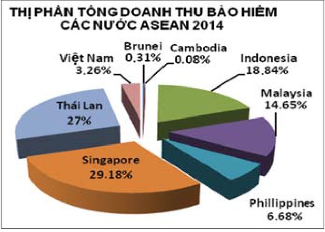 Số liệu báo cáo năm 2014 của Hiệp hội Bảo hiểm các nước ASEAN cho thấy, quy mô thị trường bảo hiểm Việt Nam đứng vị trí thứ 6 trong khu vực. Tuy nhiên, Việt Nam chỉ chiếm khoảng trên 3% thị phần bảo hiểm khu vực, bằng xấp xỉ 1/9 thị trường lớn nhất khu vực là Singapore và một nửa thị trường xếp trên liền kề là Philippines.