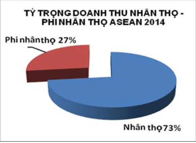 Về bảo hiểm phi nhân thọ, Việt Nam đứng thứ 6 với xấp xỉ 6% thị phần, bằng 1/5 thị trường lớn nhất là Thái Lan và gần bằng thị trường xếp trên liền kề là Philippines.