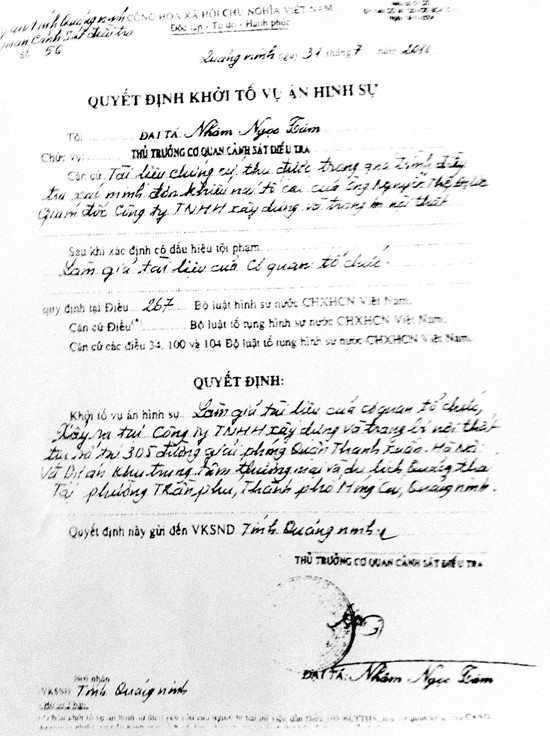 Tuy nhiên, ông Được lại cho rằng, Vietcombank đang cố tình bỏ qua thực tế dự án đang có tranh chấp kéo dài trong hơn 10 năm qua và khẳng định, có những khuất tất trong quá trình thẩm định, mua bán dự án này. Ông Được cho biết, qua làm việc với các cơ quan chức năng ở tỉnh Quảng Ninh thì được biết, việc sang tên sổ đỏ khu đất 2.000 m2 từ Công ty Quảng Thái sang Vietcombank Chi nhánh Móng Cái chưa thể thực hiện vì dự án này đang trong tình trạng tranh chấp. Ông Được cũng cung cấp cho phóng viên ĐTCK Quyết định số 56 ngày 31/7/2011 của Thủ trưởng cơ quan cảnh sát điều tra tỉnh Quảng Ninh về việc khởi tố vụ án hình sự "Làm giả tài liệu của cơ quan tổ chức xảy ra tại Công ty TNHH Xây dựng và trang bị nội thất trụ sở 305 đường Giải Phóng, quận Thanh Xuân, Hà Nội và dự án Trung tâm thương mại và du lịch Quảng Thái, tại phường Trần Phú, TP. Móng Cái".