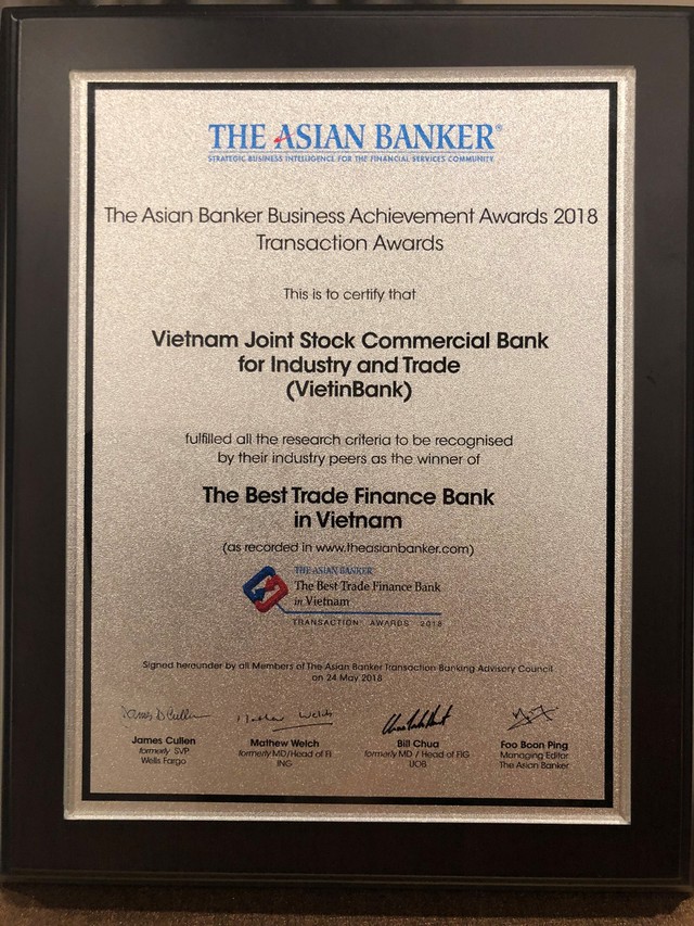 Lần thứ hai được The Asian Banker vinh danh tại các hạng mục giải thưởng danh giá tiếp tục khẳng định sự đánh giá cao của giới tài chính quốc tế về vị thế của VietinBank.