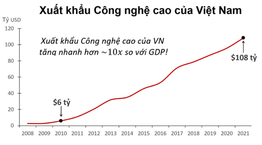 Những động lực chính thúc đẩy các doanh nghiệp thành lập nhà máy công nghệ cao tại Việt Nam bao gồm lực lượng lao động có kỹ năng cao, mặt bằng lương thấp và vị trí địa lý gần với các chuỗi cung ứng công nghệ cao ở châu Á. Căng thẳng thương mại Mỹ - Trung gần đây đã thúc đẩy sự dịch chuyển năng lực sản xuất từ Trung Quốc sang Việt Nam, bằng chứng là thặng dư thương mại của Việt Nam với Mỹ tăng hơn gấp đôi từ 35 tỷ USD năm 2018 lên 71 tỷ USD (tương đương ~20%/GDP) trong năm 2021, cùng lúc thâm hụt thương mại với Trung Quốc cũng tăng hơn gấp đôi lên 54 tỷ USD.