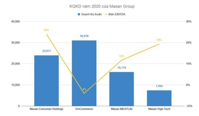 Điểm đáng chú ý nhất của Masan Group trong quý 4/2020 có lẽ đến từ việc công ty con VinCommerce đã đạt EBITDA dương 16 tỷ đồng, tương ứng tỷ suất 0,2%. Tuy chưa phải là con số cao, nhưng nó đánh dấu một cột mốc quan trọng đối với mảng bán lẻ của Masan Group, tạo tiền đề cho công cuộc chuyển đổi của năm 2021.