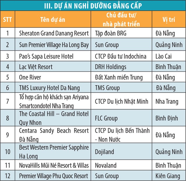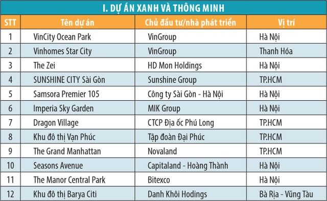 Báo Đầu tư Bất động sản xin trân trọng giới thiệu các dự án bất động sản được bình chọn với số phiếu bầu cao trên ba hạng mục: DỰ ÁN XANH VÀ THÔNG MINH - DỰ ÁN HÚT DÒNG TIỀN - DỰ ÁN NGHỈ DƯỠNG HÀNG ĐẦU.