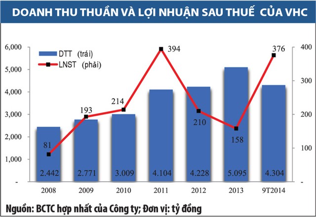 Đáng chú ý, lợi nhuận ròng 9 tháng đầu năm 2014 đạt 400 tỷ đồng, tăng mạnh so với lợi nhuận năm 2013 (176 tỷ đồng) và gấp đôi chỉ tiêu ĐHCĐ thường niên 2014 đề ra. Đóng góp vào lợi nhuận 9 tháng có 182 tỷ đồng thu nhập tài chính từ bán toàn bộ 70% cổ phần chi phối tại công ty con (CTCP Thức ăn Thủy sản Vĩnh Hoàn 1) cho Pilmico International Pte. Ltd. (Philippines). Giá trị toàn bộ thương vụ là 28 triệu USD, được bình chọn là một trong những thương vụ M&A tốt nhất năm 2014 tại Diễn đàn M&A 2014.