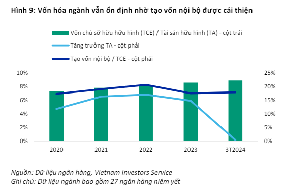 Theo VIS Rating, tỷ lệ nợ xấu (NPL) trung bình toàn ngành đã tăng lên 2,2% trong 3 tháng đầu năm 2024 từ mức 1,9% vào năm 2023 do cho vay bán lẻ. Tỷ suất lợi nhuận trên tổng tài sản bình quân (ROAA) của các ngân hàng cải thiện nhẹ lên 1,6% từ 1,5% trong cùng khoảng thời gian do chi phí tín dụng thấp hơn và biên lãi ròng (NIM) cải thiện.