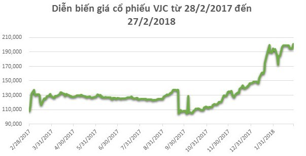 Đúng 1 năm sau, ngày 27/2/2018, mức vốn hóa thị trường của VJC lên mức xấp xỉ 4 tỷ USD.