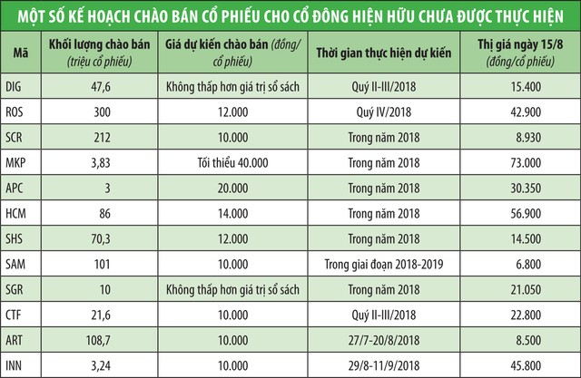 Tuy nhiên, trên thực tế, khi mà thị trường đã bước sang nửa cuối tháng 8/2018, tức gần 2/3 thời gian của năm 2018 đã qua đi, số doanh nghiệp gọi vốn thành công còn khá hạn chế. Tiến độ gọi vốn từ cổ đông tại hàng loạt doanh nghiệp vẫn đang bỏ ngỏ.