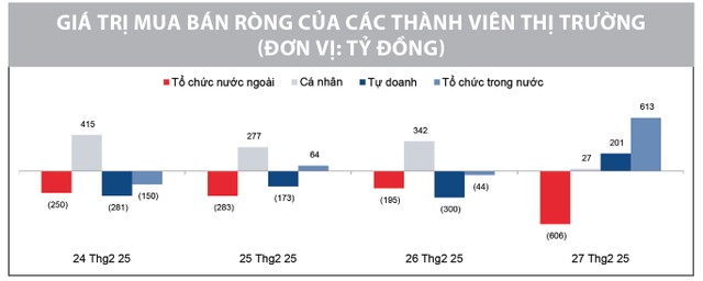 Ngoài ra, khối tự doanh quay lại mua ròng hơn 201 tỷ đồng sau 4 phiên bán ròng liên tiếp, góp phần hỗ trợ xu hướng tăng của thị trường.