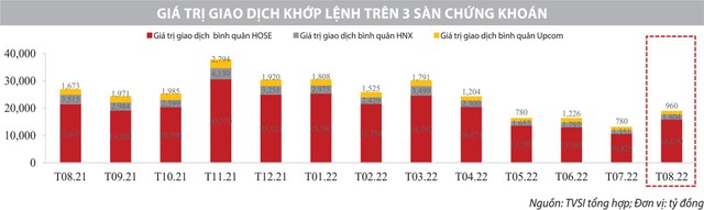 Thanh khoản giao dịch khớp lệnh bình quân trong nửa đầu tháng 8 cải thiện rất tích cực nếu so với bình quân tháng 6 hay tháng 7 trước đó, nhờ sự hỗ trợ của các thông tin về thời gian thanh toán T+2 sắp được rút ngắn, cùng với đó là kết quả kinh doanh quý II/2022 tăng trưởng tốt tại một số nhóm ngành như bất động sản công nghiệp.