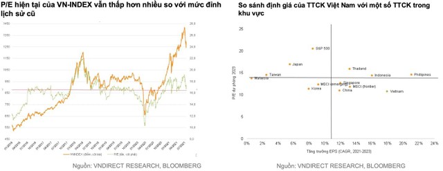 Theo ước tính của VNDIRECT, chỉ số VN-Index đang được giao dịch với mức P/E forward 2021 là 15,8 lần. Trên góc độ tăng trưởng lợi nhuận và định giá thị trường, Việt Nam là thị trường có mức định giá rất hấp dẫn xét trên triển vọng tăng trưởng lợi nhuận mạnh mẽ trong giai đoạn 2021-2023.