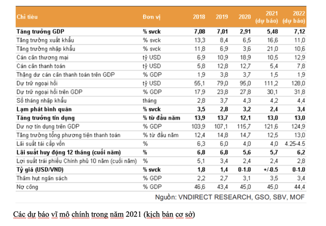 Dự báo của VNDIRECT dựa trên các giả định chính như: Việt Nam cơ bản kiểm soát được làn sóng lây nhiễm thứ tư trong tháng 8/2021 và đẩy lùi hoàn toàn vào cuối quý III/2021;