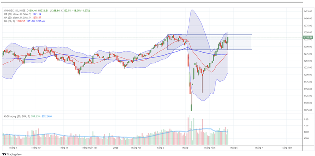 Theo báo cáo chiến lược mới phát hành của Công ty Chứng khoán VNDirect, chỉ số VN-Index đã bật tăng mạnh 6% trong tháng 5/2025, bứt phá lên mức 1.330 điểm, đưa Việt Nam trở thành thị trường có hiệu suất tốt nhất toàn cầu trong tháng. Đà tăng ấn tượng này chủ yếu đến từ tâm lý lạc quan của nhà đầu tư, khi Việt Nam đang đàm phán tích cực với Bộ Thương mại Hoa Kỳ về các vấn đề thương mại và thuế quan.
