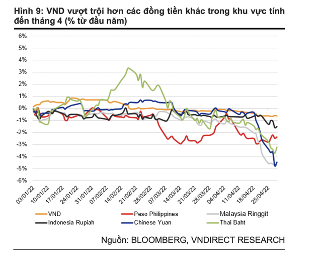 Đồng USD mạnh kéo tỷ giá USD/VND tăng khoảng 0,6% trong 4 tháng 2022. Tuy nhiên, VND vẫn là một trong những đồng tiền ổn định nhất ở khu vực Châu Á - Thái Bình Dương.
