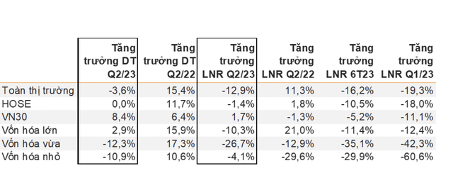 Dựa theo ước tính của VNDIRECT, lợi nhuận ròng quý II/2023 của các công ty niêm yết trên 3 sàn (HOSE, HNX, UPCoM) giảm 12,9% so với cùng kỳ (trong khi lợi nhuận ròng của các công ty niêm yết trên HOSE chỉ giảm 1,4% so với cùng kỳ). Tuy nhiên, con số này đã cải thiện so với quý I/2023 (giảm 19,3 so với cùng kỳ) và quý IV/2022 (giảm 32,5% so với cùng kỳ).
