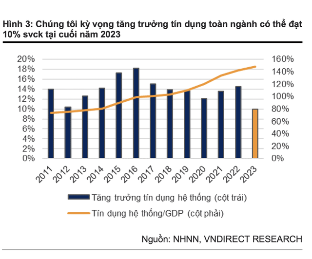 VNDirect: Tăng trưởng tín dụng toàn ngành năm 2023 có thể đạt mức 10%