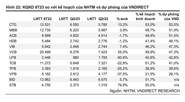 Nửa cuối năm, bên cạnh dư địa tín dụng còn lại, VNDirect kỳ vọng những ngân hàng có tỷ lệ cao về cho vay bán lẻ như VIB, ACB có nhiều cơ hội để cải thiện tăng trưởng tín dụng khi Việt Nam đang dần bước vào giai đoạn phục hồi ban đầu. Ngược lại, những ngân hàng có tỷ lệ cho vay bất động sản cao có thể sẽ gặp khó khăn trong việc mở rộng tín dụng khi Thông tư 06/2023 (hiệu lực từ tháng 9/2023) sẽ giới hạn khả năng tiếp cận vốn của các doanh nghiệp.