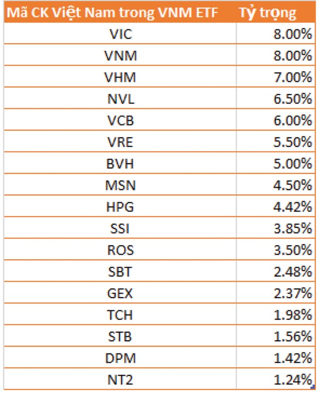 Trước đó, VNM ETF đã loại VCG ra khỏi danh mục trong tuần từ 10 - 17/11/2018 do doanh nghiệp "khóa" tỷ lệ sở hữu tối đa của nhà đầu tư nước ngoài về 0%. Như vậy, sau khi GEX vào danh mục, thay thế VCG, số lượng cổ phiếu Việt Nam trong danh mục MVIS Vietnam Index chiếm 17/25 cổ phiếu. Tỷ trọng lớn nhất vẫn thuộc về VIC và VNM (8%), kế đó là VHM (7%).