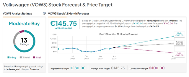 Volkswagen là công ty sản xuất phụ tùng gốc lớn thứ hai trên thế giới, tính theo doanh số bán hàng. Danh mục đầu tư của công ty bao gồm 12 thương hiệu trên mọi phân khúc, từ siêu xe (Porsche, Bugatti, Bentley và Lamborghini), xe máy (Ducati), cho tới dòng xe tải hạng nặng và xe chở khách (Audi, Skoda, Seat và VW). Công ty đã xác nhận lại định hướng năm 2024 và đang nhận được sự tin tưởng của các nhà đầu tư.