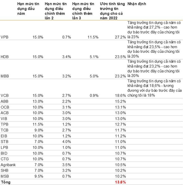 VNDirect cho rằng, đây là động thái phân bổ lại hạn mức tín dụng giữa các NHTM và mục tiêu 14% của NHNN vẫn được duy trì.
