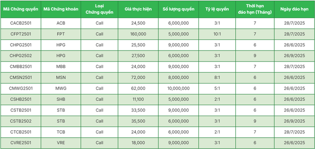 Những CW trên được niêm yết với kỳ hạn đa dạng như 6 tháng, 7 tháng và 9 tháng. Riêng hai mã CW của HPG và STB được phát hành với hai kỳ hạn là 6 tháng và 9 tháng, mang đến đa dạng lựa chọn cho nhà đầu tư.