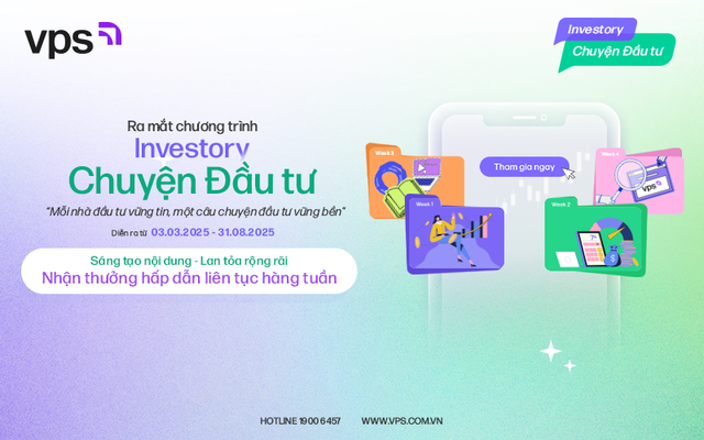 Tham gia chương trình “Investory - Chuyện Đầu Tư”, nhà đầu tư sẽ được cung cấp các thông tin “nóng” nhất về thị trường đầu tư tài chính – chứng khoán, học hỏi những kiến thức đầu tư bền vững, chia sẻ những câu chuyện đầu tư truyền cảm hứng và kết nối với cộng đồng đầu tư văn minh. Đặc biệt, VPS sẽ dành tặng cho các khách hàng tham gia những phần thưởng hấp dẫn được trao liên tục hàng tuần.