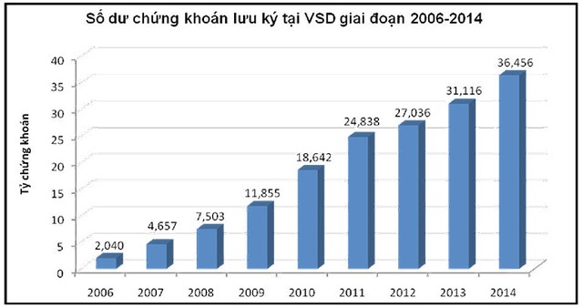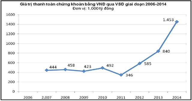 Năm 2014, tổng giá trị thanh toán giao dịch chứng khoán qua VSD lên tới 1.453.000 tỷ đồng, tăng 3,3 lần so với 444.000 tỷ đồng năm 2007. Chỉ tính riêng 5 tháng đầu năm 2015, giá trị thanh toán giao dịch chứng khoán qua VSD đã lên tới 646.000 tỷ đồng.