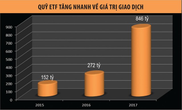 Bên cạnh loại hình quỹ mở, Việt Nam đang phát triển 2 quỹ ETF (SSIAM và VFM đang quản lý). Sản phẩm này dù còn mới mẻ với nhà đầu tư, nhưng kể từ đầu năm đến nay đã ghi nhận giá trị giao dịch tăng mạnh (846 tỷ đồng so với 227 tỷ của năm 2016), vừa mở ra cơ hội cho ngành quản lý quỹ cũng như các tổ chức cung cấp dịch vụ, trong đó có VSD.
