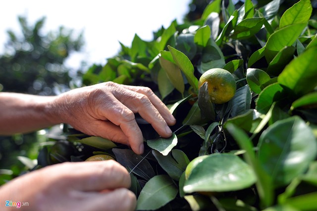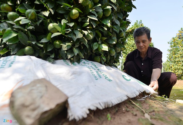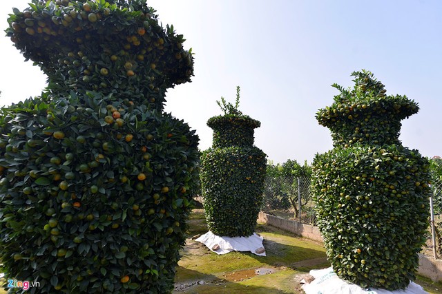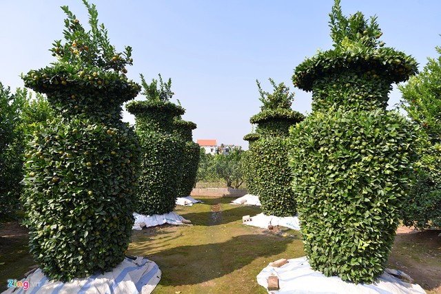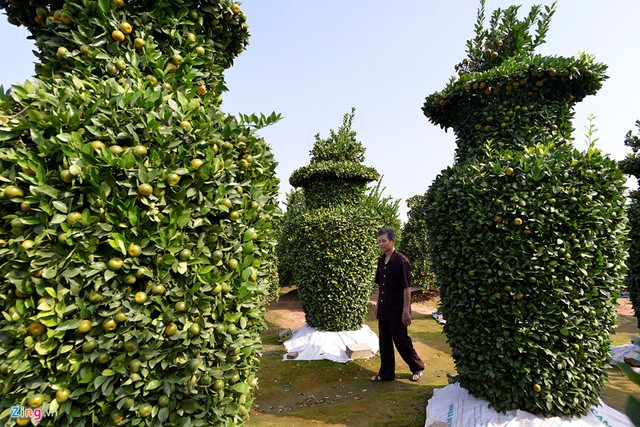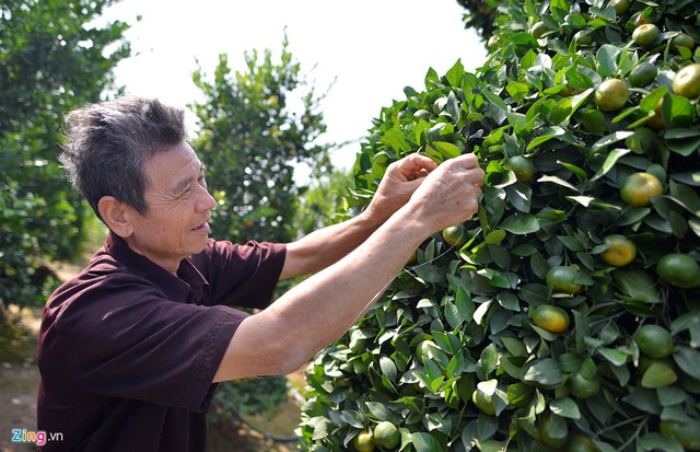 Ông Nguyễn Trung Thành là người đầu tiên ở Văn Giang, Hưng Yên trồng quýt lục bình cao hơn 3 m phục vụ Tết.