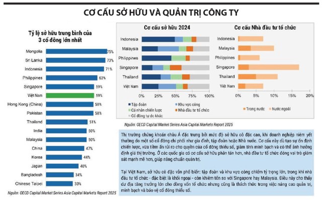 Một trong những nguyên nhân căn bản khiến chất lượng thực hành QTCT tại các doanh nghiệp niêm yết Việt Nam chưa cao xuất phát từ cấu trúc sở hữu cô đặc. Tại nhiều doanh nghiệp niêm yết, quyền sở hữu tập trung mạnh vào một nhóm cổ đông lớn hoặc cổ đông chi phối, từ đó ảnh hưởng đến tính độc lập và hiệu quả giám sát của Hội đồng quản trị (HĐQT). Trong khi đó, theo thông lệ tốt, QTCT không chỉ hướng đến hiệu quả vận hành nội tại mà còn tạo dựng giá trị danh tiếng và niềm tin với nhà đầu tư, đặc biệt là nhà đầu tư tổ chức và quốc tế.