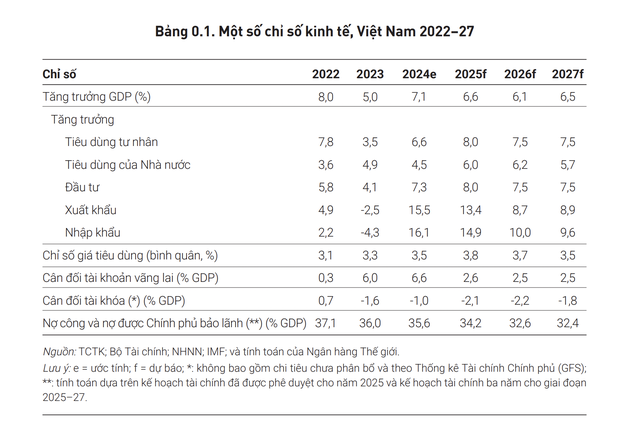 Theo Báo cáo, sau đà tăng trưởng mạnh mẽ nhờ xuất khẩu sớm tăng mạnh trong nửa đầu năm, kinh tế Việt Nam được dự báo sẽ tăng chậm lại trong phần còn lại của năm khi xuất khẩu dần trở về quỹ đạo bình thường. Là nền kinh tế định hướng xuất khẩu, Việt Nam tiếp tục chịu tác động từ triển vọng tăng trưởng toàn cầu suy yếu và nhu cầu giảm từ các đối tác thương mại lớn. Bên cạnh đó, những bất định về chính sách thương mại có thể ảnh hưởng tới niềm tin tiêu dùng và doanh nghiệp.