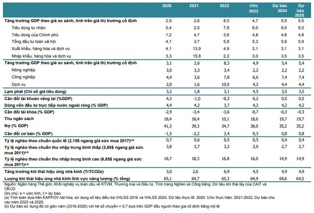 WB dự báo, kinh tế Việt Nam tăng trưởng 4,7% trong năm 2023 do sức cầu trong nước và bên ngoài yếu đi, sau đó dự báo sẽ hồi phục về mức 5,5% trong năm 2024 và 6,0% trong năm 2025.