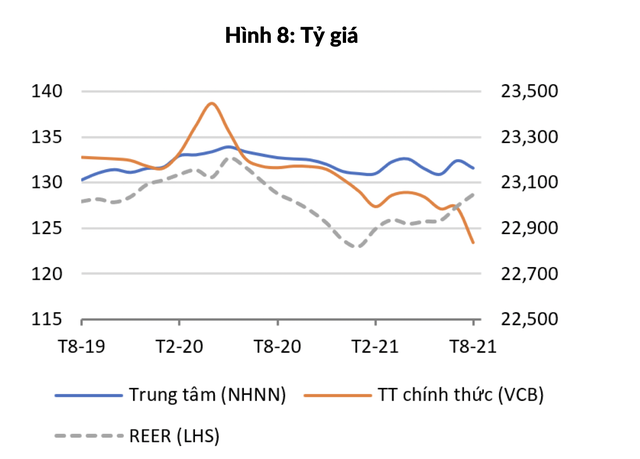 Thực chất, ngày 11/8/2021, NHNN giảm tỷ giá mua USD từ các ngân hàng thương mại 225 VND (tương đương 1%). Và ngày 24/8/2021, NHNN quyết định giảm lãi suất tiền gửi vượt dự trữ bắt buộc bằng ngoại tệ của các ngân hàng thương mại tại NHNN từ mức 0,05% xuống còn 0% từ ngày 1/9/2021. Những động thái này có thể đã hỗ trợ cho cung đồng USD trên thị trường.